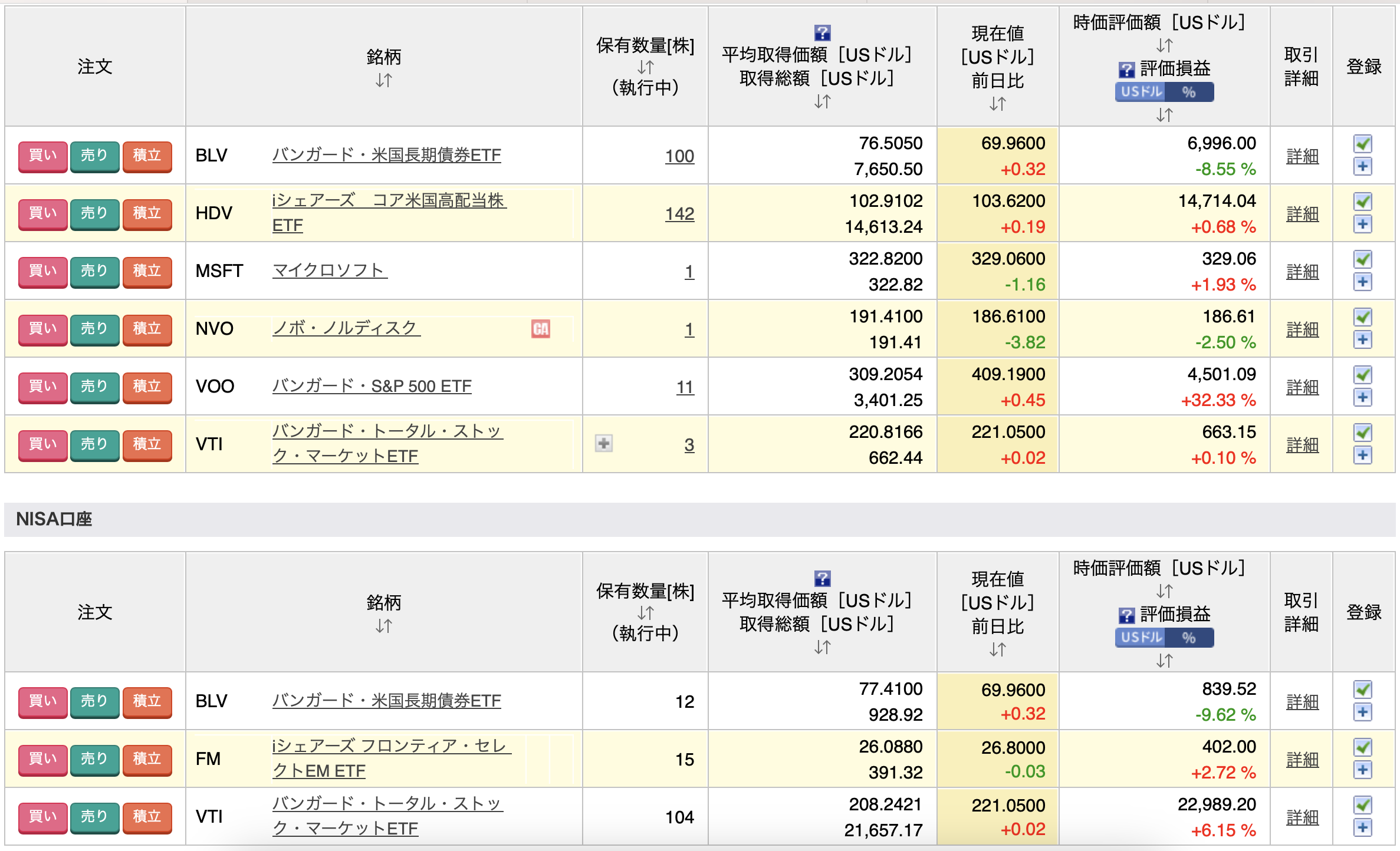 素晴らしいね。。投資信託とVOOの含み益防波堤は。20%下がっても心理的には売却する必要がないわけですから、長期保有がやりやすい。