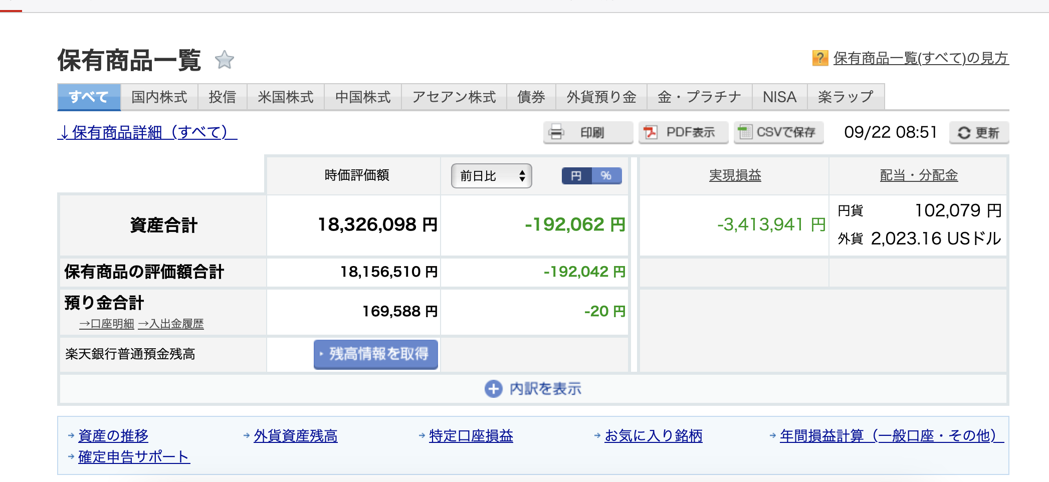 株式に投資している金額のうち、半分がドル資産、半分が円資産なので、為替の評価は相殺されているはず。少なくとも140円くらいから徐々にドルを減らしてきていたので良いヘッジはできているはず。